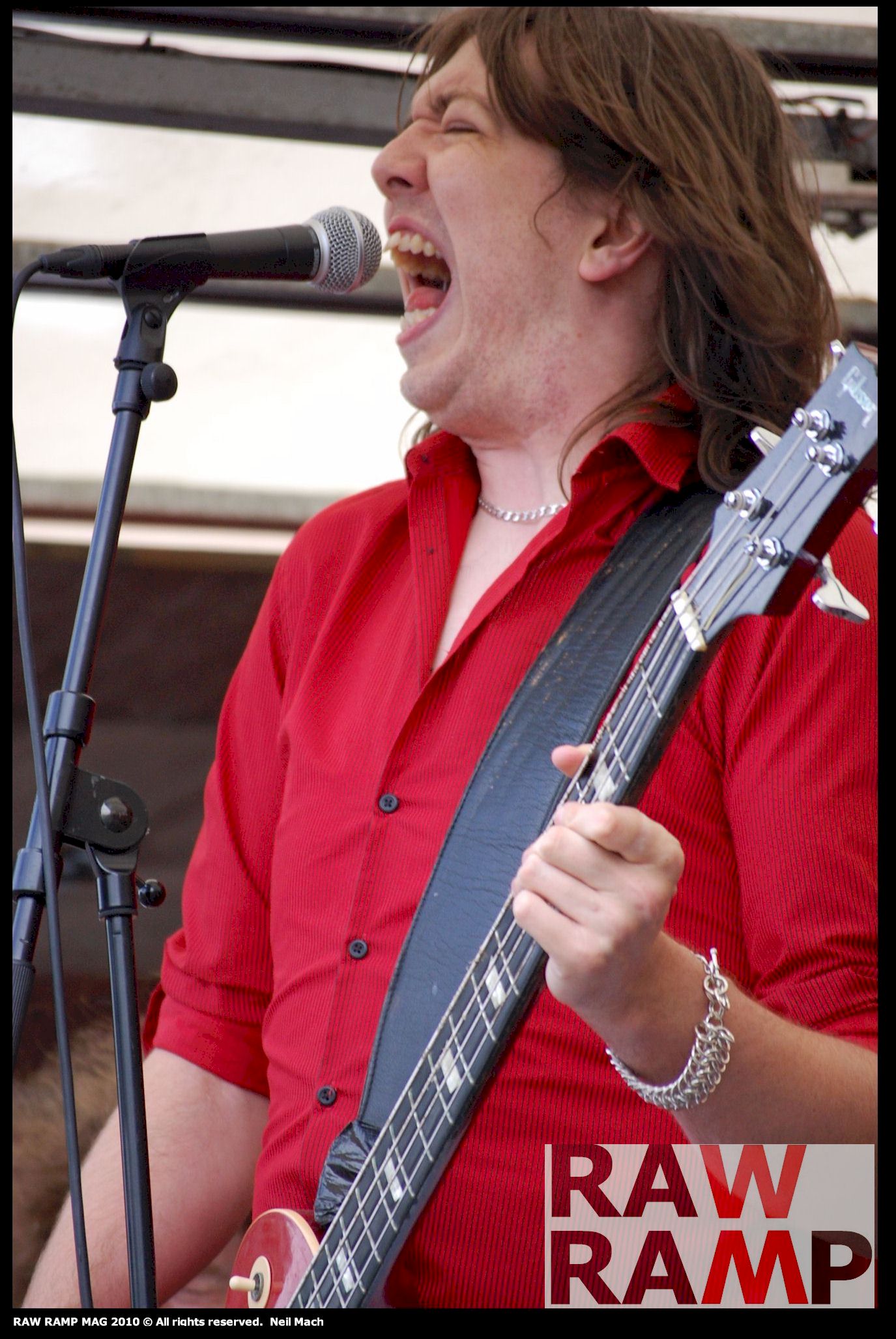 From the moment the band exploded onto the impromptu ‘stage’ we knew we were in for an extraordinary treat. The sound quality was good. As good as anything I’ve heard in any club or pub that the boys have played in. It just shows that you do not have to compromise on sound when playing in the open – even off the back of a lorry. Of course, the boys put in 100% effort (as they always do) and that energy goes a long way to ensure success. Crisp ‘n crunchy ‘White Lines’ evoked AC/DC from the Bon Scott era and is a powerful anthem. And ‘High Roller’, with vocals that are stretched tighter than a babestation girl’s G-string, is ludicrously catchy – frontman/ bass playing lead vocalist Jamie Lailey soon has the entire bubbling crowd singing along to that happy humdinger of a chorus. At other times the band sounded positively Zeppelinesque with fine blues guitar work from both Paddy Achtelik and Ben Austwick. But it also seemed like we were watching a reincarnation of the early Rolling Stones circa 1965, with the fuzzy riffs, earnest vocals and authentic stadium-ready blues rock hurtling along towards us at an extraordinarily fast pace – helped along, every inch of the way, by Will Richards on blistering drums.