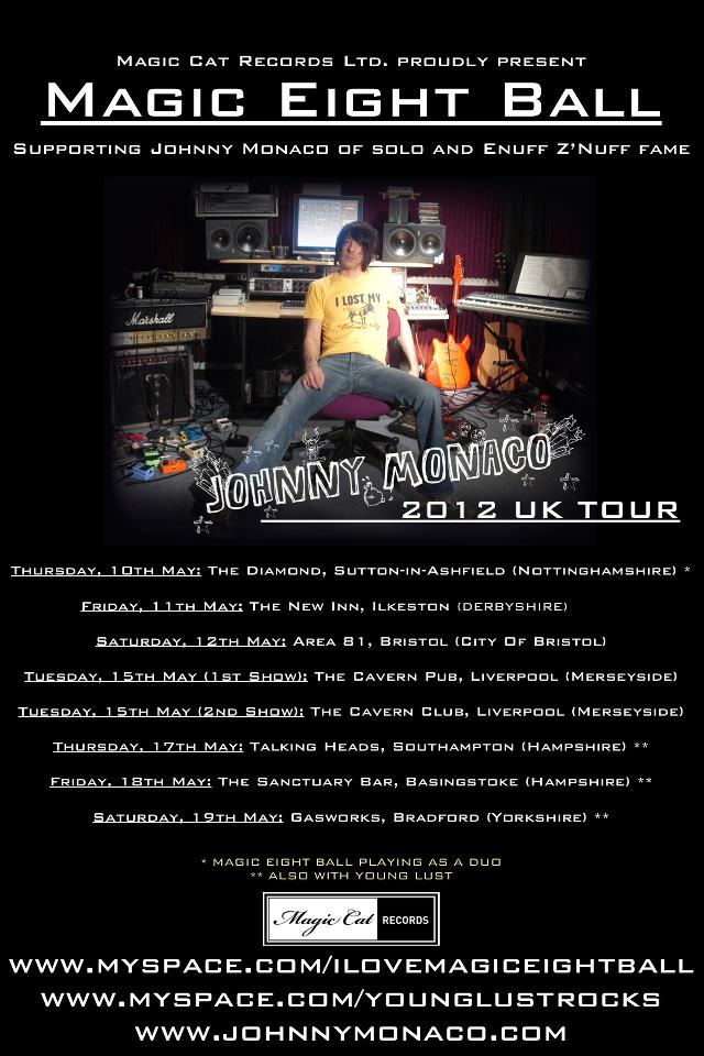 Joining Johnny Monaco on this much anticipated British tour will be MAGIC EIGHT BALL and, on selected dates, YOUNG LUST.