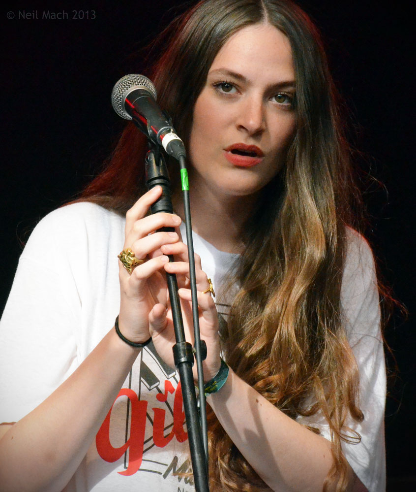 On ‘The Motherlode’ the girls used the pastel coloured squeeze-box and employed a rhythm driven by the lone guitar. Camilla’s countenance was strained on this one. With furrows deeply torn into her forehead. But when her sisters joined in with the song, the pressure was demonstrably relieved. The song-words stepped carefully along the paving stones of melody – with a desperate craving and a missionary zeal. The golden polyphony of the chorus – together with the sweetly interweaving melodic lines – created a heavenly climax. This occasioned a slight ripple of affectionate applause from the audience at The Garden Stage – who remained polite and well-behaved through the entire performance. It was a lovely and dreamy moment.
