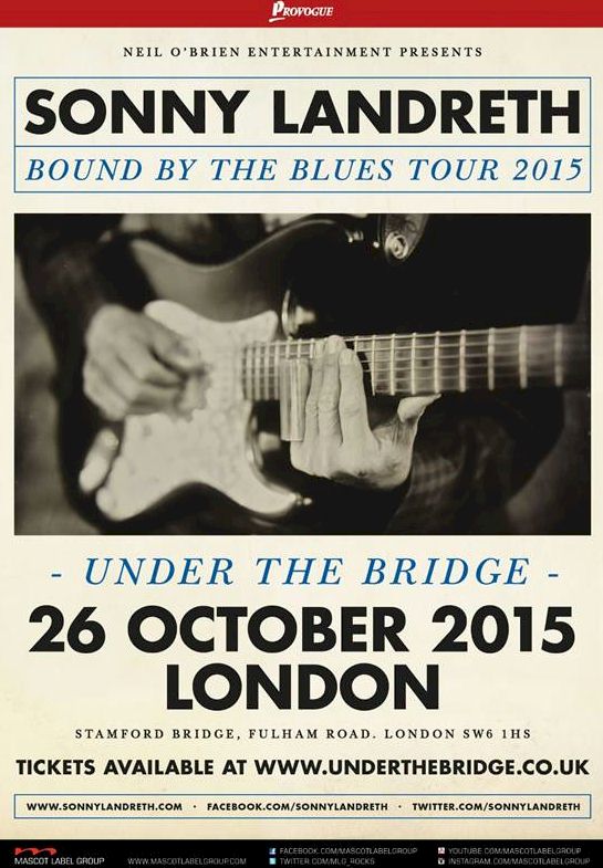 World famous roots musician and slide-guitarist Sonny Landreth will play his only UK show at the beautiful Under The Bridge venue, which is located under the Chelsea Football Club pitch at Stamford Bridge, West London on Monday 26th October 2015.