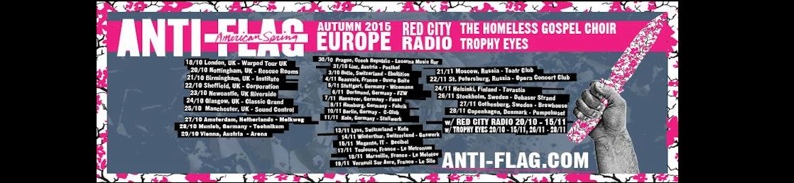 As the American punk rock band — Anti-Flag — are heading back to Europe with more live shows [UK dates are shown below] we caught up with the band on their hectic schedule to talk to them about making the stunning American Spring album, touring Europe and making ALL OF THE POISON, ALL OF THE PAIN:
