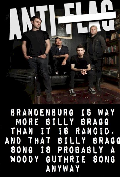 “ We are greatly influenced by rancid. That was part of having Tim sing on it. We weren’t hiding the fact that we love that band. But Brandenburg is way more Billy Bragg than it is rancid. And that Billy Bragg song is probably a Woody Guthrie song anyway. ”