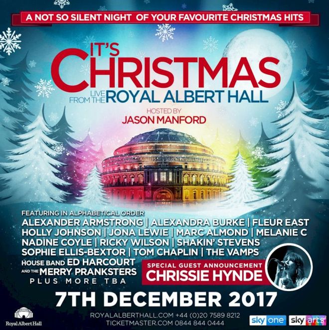 The special Christmas concert, to be hosted by JASON MANFORD boats an impressive line-up of stars that include ALEXANDER ARMSTRONG , ALEXANDRA BURKE , FLEUR EAST , HOLLY JOHNSON , JONA LEWIE , MARC ALMOND , MELANIE C , NADINE COYLE, RICKY WILSON, SHAKIN’ STEVENS, SOPHIE ELLIS-BEXTOR, TOM CHAPLIN, THE VAMPS and now with very special guest CHRISSIE HYNDE.