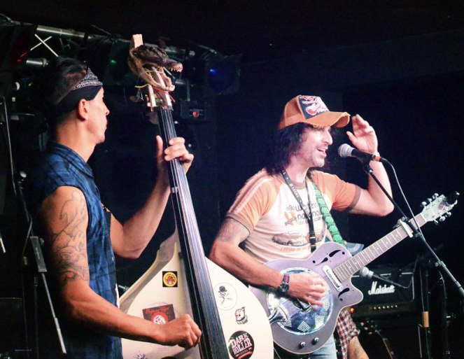 The take-home musical memory of the evening must have been WILLE AND THE BANDITS [picture below]. The slide guitar wizardry and combined bass-majesty of Matt and Wille (Matt on six-string is the best in the business] on their (mainly) instrumental number “Angel” (it’s touchingly dedicated to Wille’s mum) was truly astounding.