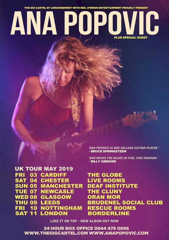 The Serbian blues guitarist and singer songwriter ANA POPOVIC has added a London Borderline show to her nationwide tour [dates below] on Saturday 11th May.