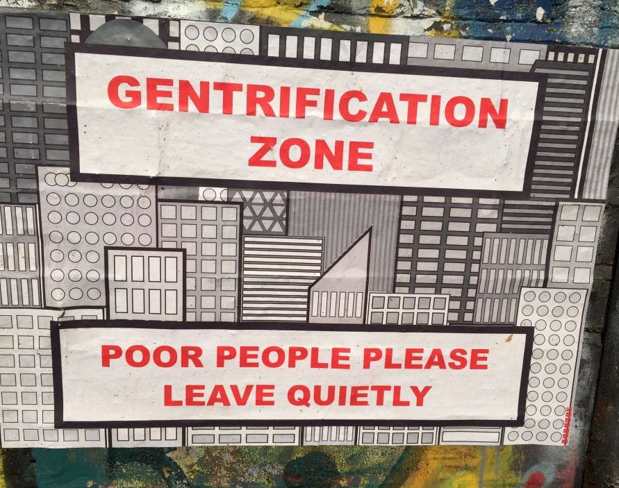 Gentrification is a process. It takes the breakdown of an entire infrastructure before it can work. There has never been an infrastructure collapse like Covid. Gentrification involves the transformation of a whole community. And it requires “positive” business strategies. Such strategies involve social movement and political-economic change. British Chancellor Rishi Sunak (a guy who has a greater family fortune than the Queen) was quite clear about the new post-Covid setting; on October 6, 2020, he told artists, starkly, that they “should retrain and find other jobs.” He went on to say, in the same interview with ITV News: “As in all walks of life, everyone is having to adapt…”