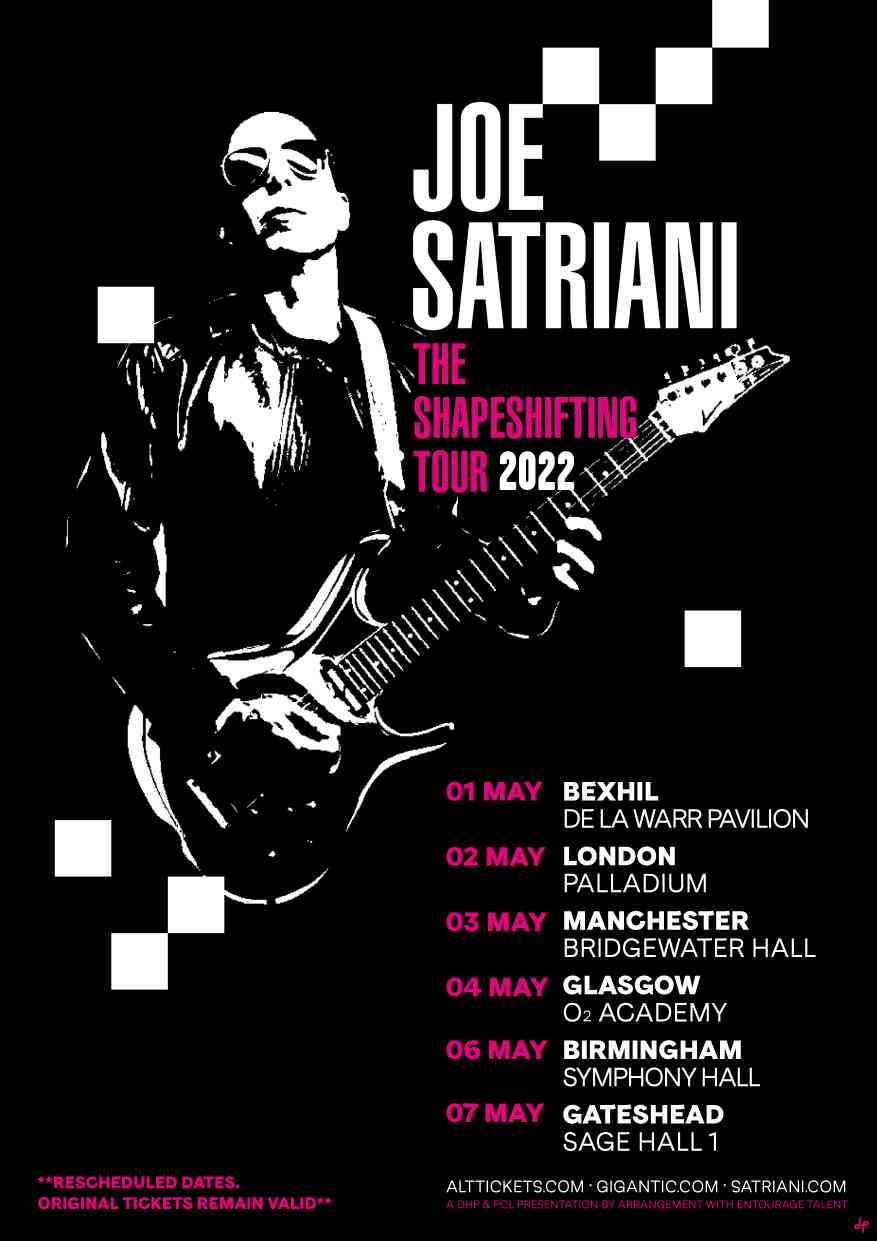 Tickets for the rescheduled UK concerts are available from www.alttickets.com/joe-satriani-tickets and http://www.satriani.com/road/