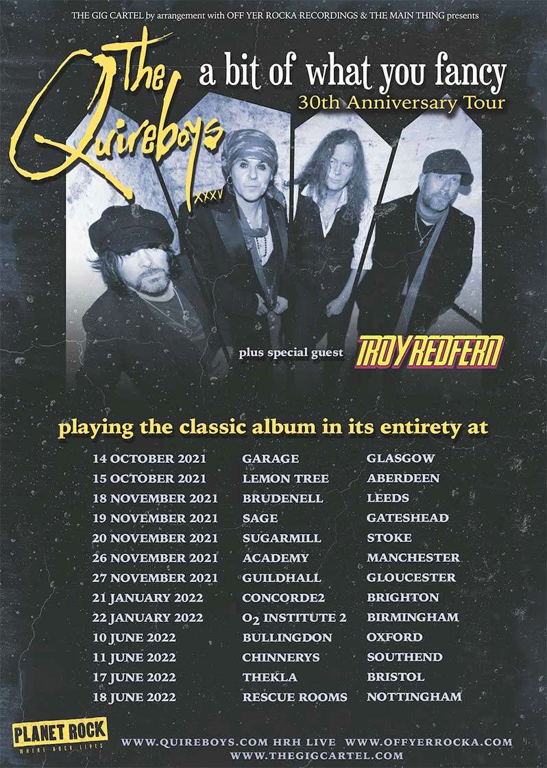 THE QUIREBOYS have confirmed that TROY REDFERN will be their very special guest on the “A Bit Of What You Fancy” 30th Anniversary UK Tour.