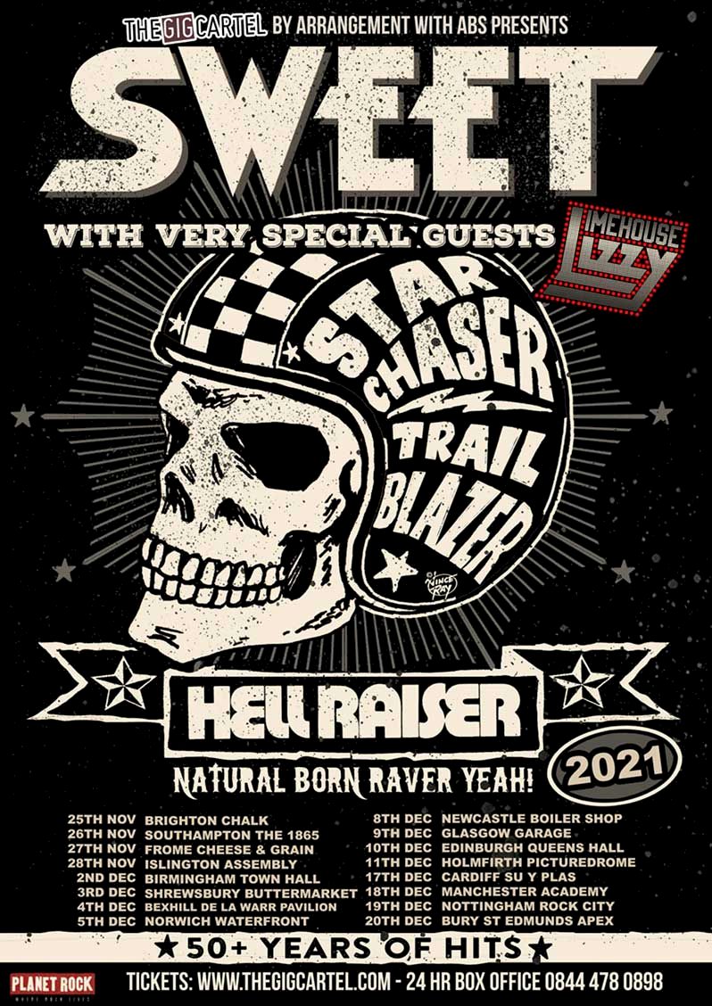 The single is released in time for Sweet’s “Hellraiser” November and December 2021 UK Tour with special guests Limehouse Lizzy (tour poster below)