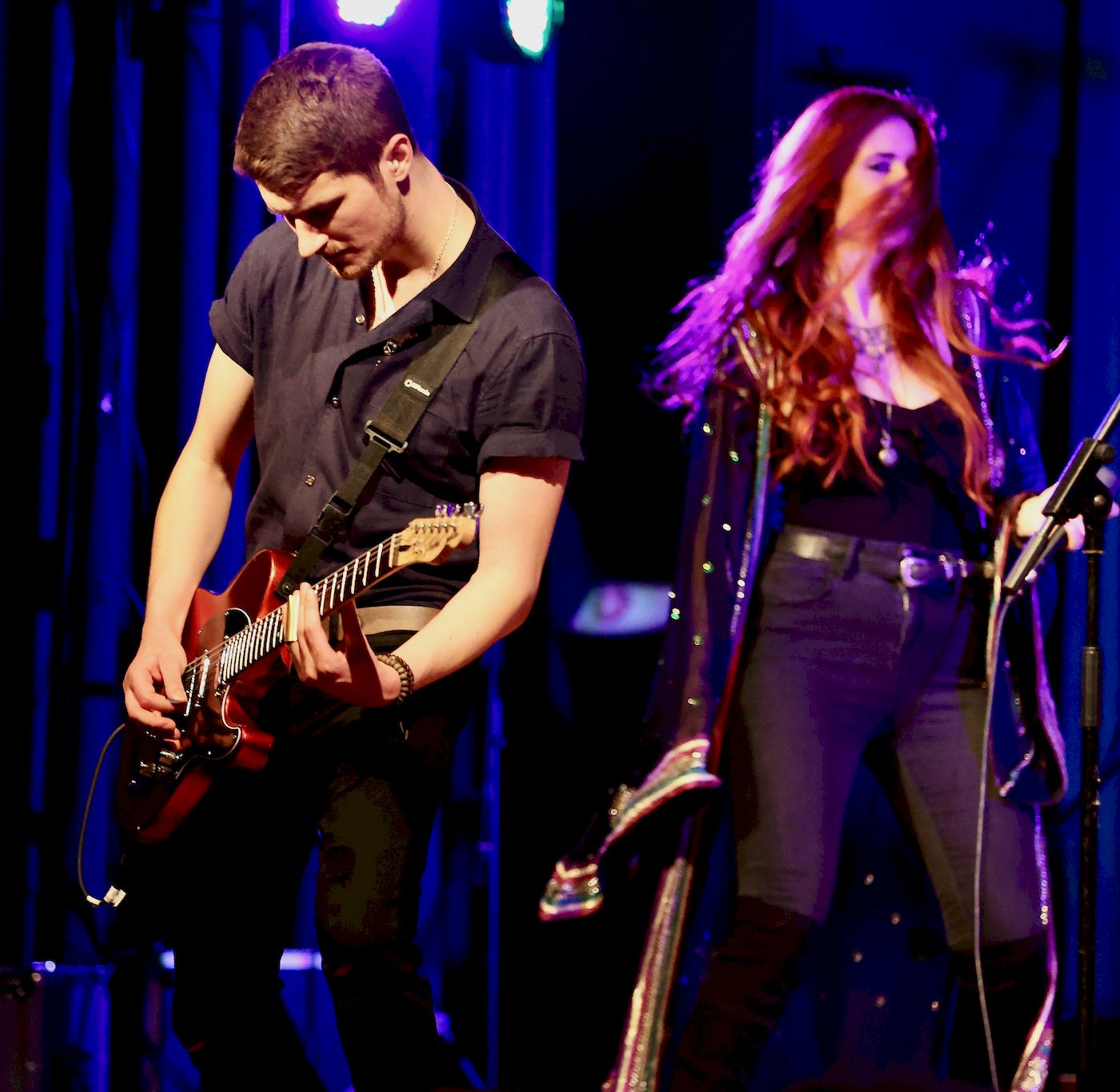 The band comprises singers Lindsey Bonnick and Chloe Dixon, with Ed “The Shred” Clarke on guitar, the uncommonly versatile Donna Peters on drums, and the legendary Billy Dedman on bass. But after Amba and her talented ensemble had put on a dazzling opening act, the brave rivalists became a temporary sextet when joined by Paul Quinn (on keyboards) for “Guilty Love”.
