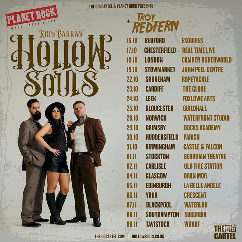 HOLLOW SOULS is a blues-rock project that combines the unambiguous talents of British virtuoso blues-rock guitarist / singer-songwriter KRIS BARRAS with the equally qualified vocalist Phoebe Jane and the multi-genre producer, bass-player and production conjurer Josiah J Manning.
