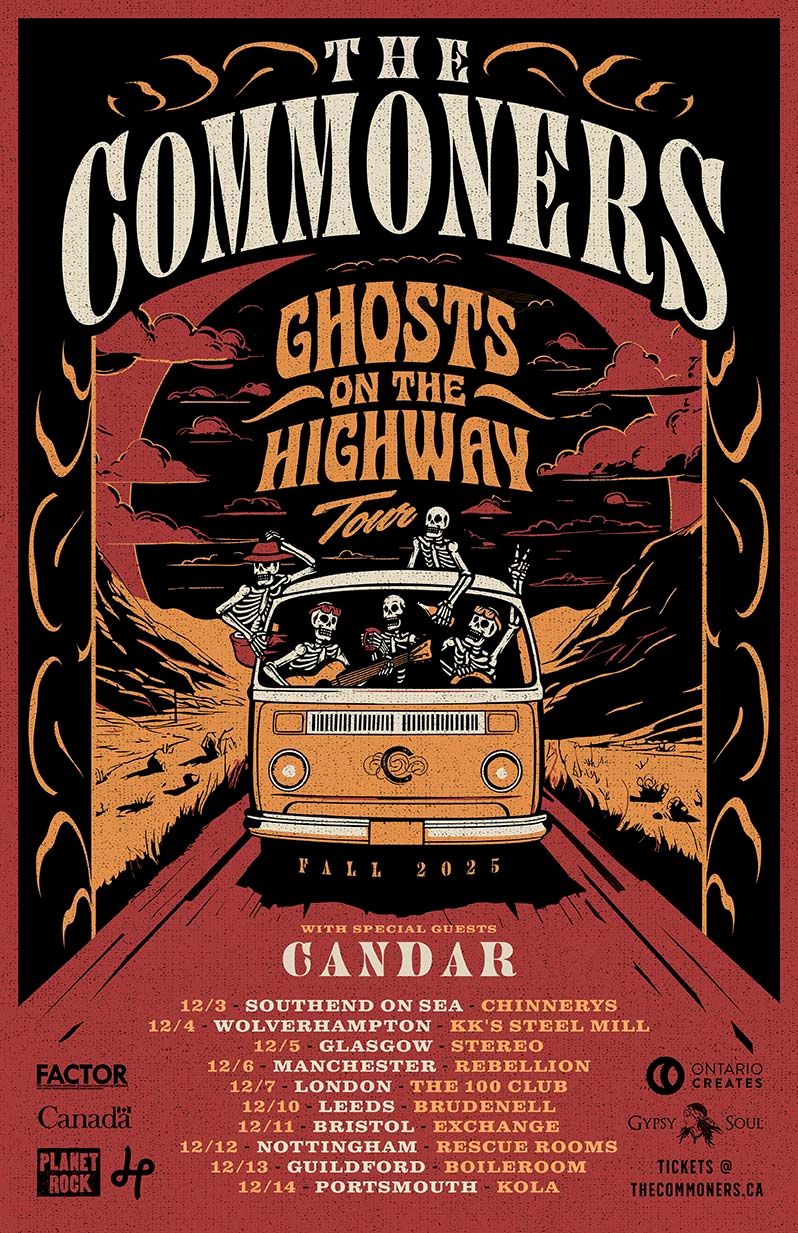 In December 2025, the renowned Canadian roots rock group THE COMMONERS will embark on a 10-date headline tour of the UK, with the North Devon alt-rock duo Candar as their special guests.
