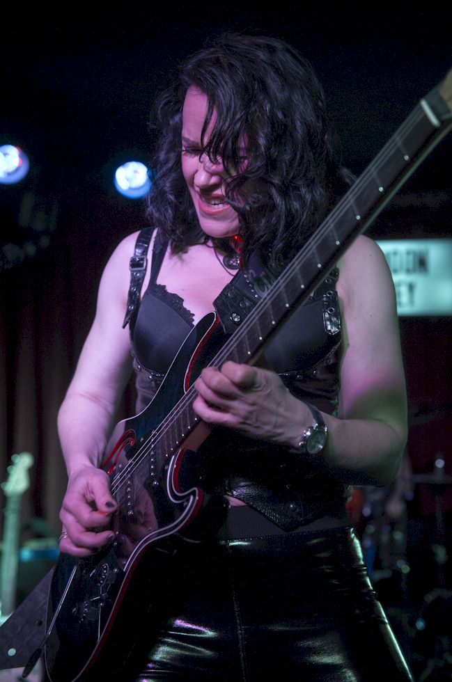 Erja wore shiny, beetle-black rubber jeans and a very short crop top when she came onstage, backed by drums and bass (no keyboards at this show.)